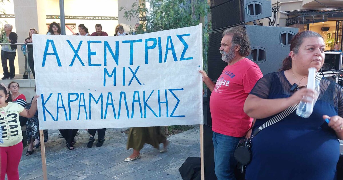 Ένα πανό, όπου αναγράφεται η φράση "Αχεντριάς, Μιχάλης Καραμαλάκης", έκλεψε την παράσταση.