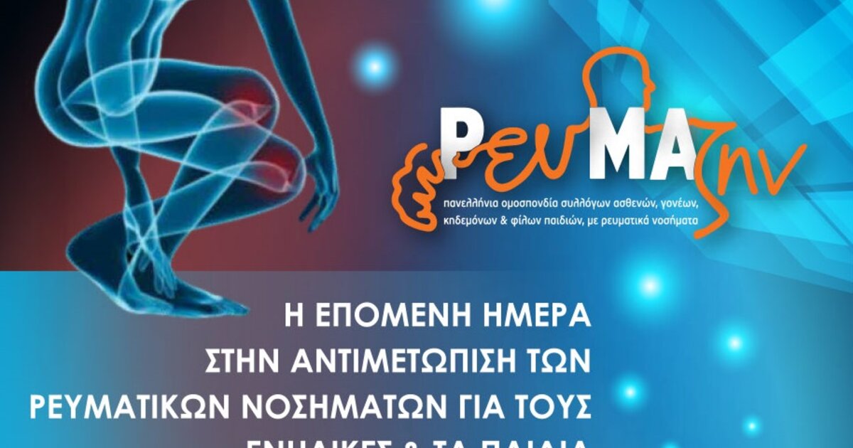 Στις 14/10/2022 στο Ξενοδοχείο Mediterranean Palace στη Θεσσαλονίκη θα πραγματοποιηθεί ενημερωτική εκδήλωση με θέμα «Η επόμενη μέρα στην αντιμετώπιση των ρευματικών νοσημάτων για τους ενήλικες και τα παιδιά» με τη συμμετοχή έγκριτων επιστημόνων και στόχο την έγκυρη ενημέρωση του κοινού γύρω από τις τελευταίες εξελίξεις στην αντιμετώπιση των ρευματικών νοσημάτων.