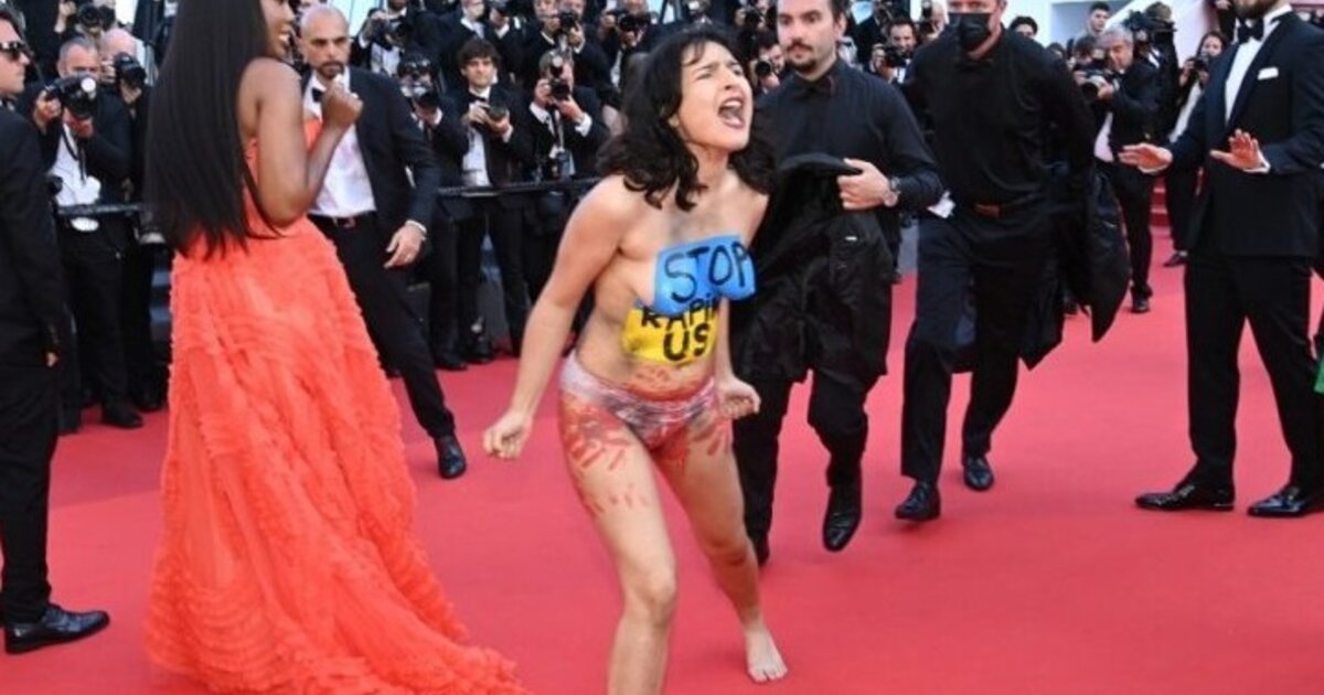 Αναστάτωση προκλήθηκε το Σάββατο στο κόκκινο χαλί του Κινηματογραφικού Φεστιβάλ των Καννών όταν εμφανίστηκε μια γυμνή ακτιβίστρια που θέλησε να αποδοκιμάσει τη ρωσική εισβολή στην Ουκρανία, ενώ χρειάστηκε η επέμβαση των ανδρών ασφαλείας για την απομάκρυνσή της.