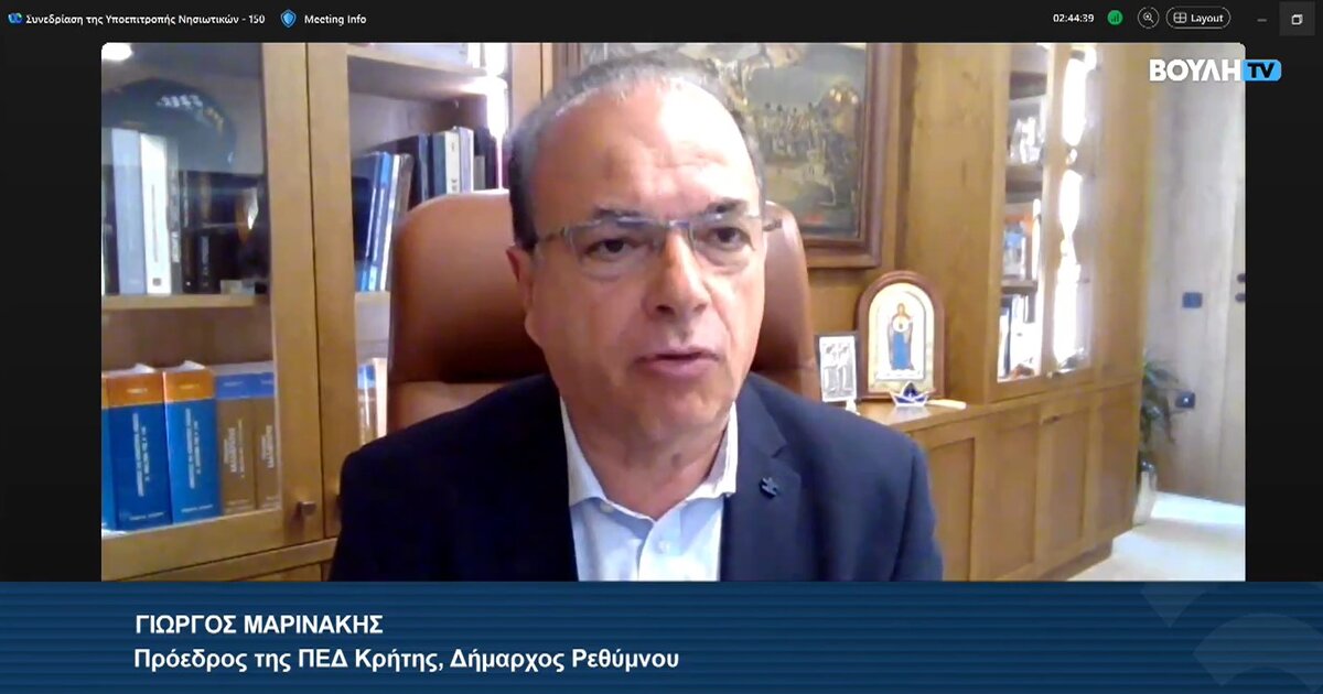 "Η Τοπική Αυτοδιοίκηση δεν μπορεί να υποκαταστήσει τις υποχρεώσεις της Πολιτείας", είπε ο Πρόεδρος της ΠΕΔ Κρήτης και Δήμαρχος Ρεθύμνου, Γιώργης Μαρινάκης, μιλώντας για την Υγεία στα νησιά, στη συνεδρίαση της Υποεπιτροπής Νησιωτικών Περιοχών της Ειδικής Μόνιμης Επιτροπής Περιφερειών της Βουλής, το μεσημέρι της Τρίτης 24.06.2025.