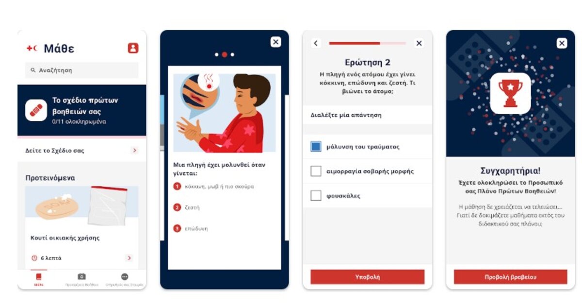 Με διαδραστικά κουίζ και απλά, βήμα προς βήμα, καθημερινά σενάρια πρώτων βοηθειών, δεν ήταν ποτέ πιο εύκολο να διδαχτείτε τις πρώτες βοήθειες.