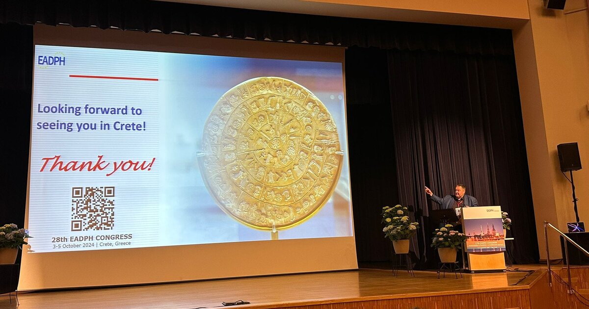 Επισφραγίστηκε η ανάληψη από την Ελλάδα του επόμενου Συνεδρίου της EADPH, που θα πραγματοποιηθεί στο Ηράκλειο το διάστημα 3-5 Οκτωβρίου 2024. Μάλιστα το κοινό υποδέχθηκε την παρουσίαση του Συνεδρίου της EADPH στην Κρήτη με θερμά χειροκροτήματα! Ενθουσίασε μάλιστα τους συμμετέχοντες το μικρό αλλά εξαιρετικά συμβολικό δώρο με τον δίσκο της Φαιστού που τους έδωσαν οι Έλληνες εκπρόσωποι.